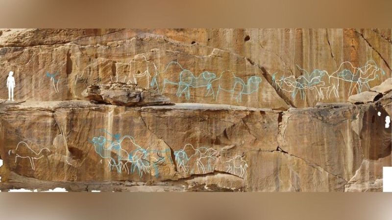 Древни скални рисунки, изобразяващи пустинни видове в реален размер, като камили и козирози, са открити издълбани в скали на видни места в южния край на пустинята Нефуд в северна Саудитска Арабия.