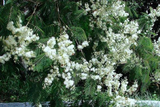 Цветове на дървото Anadenanthera colubrina. Елитът на Уари добавял психеделичното вещество вилка, получено от семената на дървото, към бирата чича, направена от плодовете на растението Schinus molle. Кредит: Zimbres ; CC BY-SA 3.0