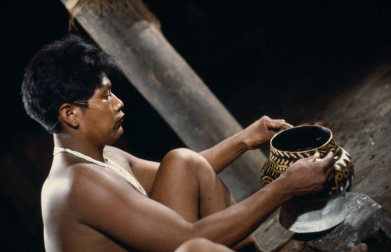 Аяхуаска и чакруна в тенджера преди варенето на напитката. Кредит: Wikimedia Commons