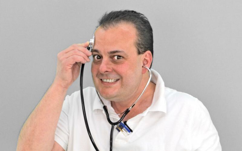 Анестезиолог лети на почивка. Изведнъж стюардесата обявява: