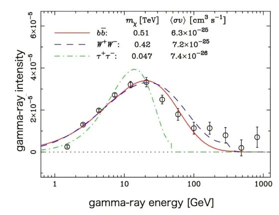 Наблюдаваният енергиен спектър е в съответствие с радиацията, предсказана от анихилацията на хипотетичните WIMP частици с маса приблизително 500 пъти по-голяма от тази на протона.