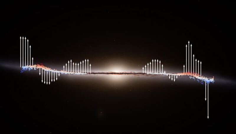 Млечният път е хванат в действие, докато създава вълни. Използвайки данни от телескопа Gaia на Европейската космическа агенция, астрономите са открили масивна пулсация, разпростираща се навън през диска на нашата галактика, простираща се на десетки хиляди светлинни години и влияеща на движението на безброй звезди.