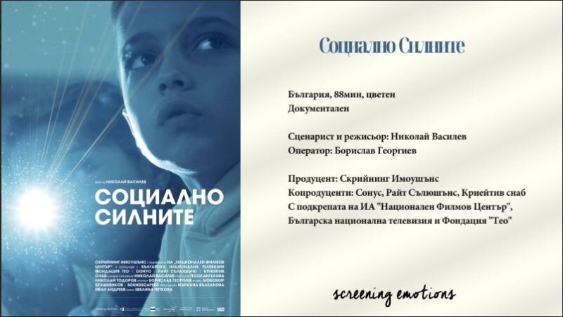 Продуцентска компания Скрийнинг Имоушънс, заедно с Фондация Тео, Сонус, Райт сълюшънс, Криейтив Снаб и с подкрепата на ИА "Национален Филмов Център" и Българска национална телевизия, представят филма "Социално силните" за съдбата на успешните пораснали ученици на учителя по физика Теодосий Теодосиев в сферата на науката и технологиите.