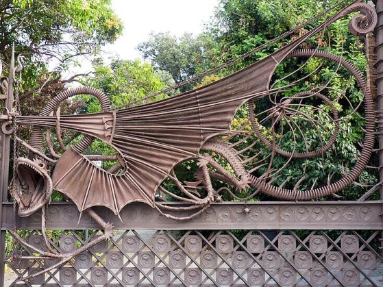 Входна порта на павилионите Гюел, създадена от Гауди. Кредит: wikiwand