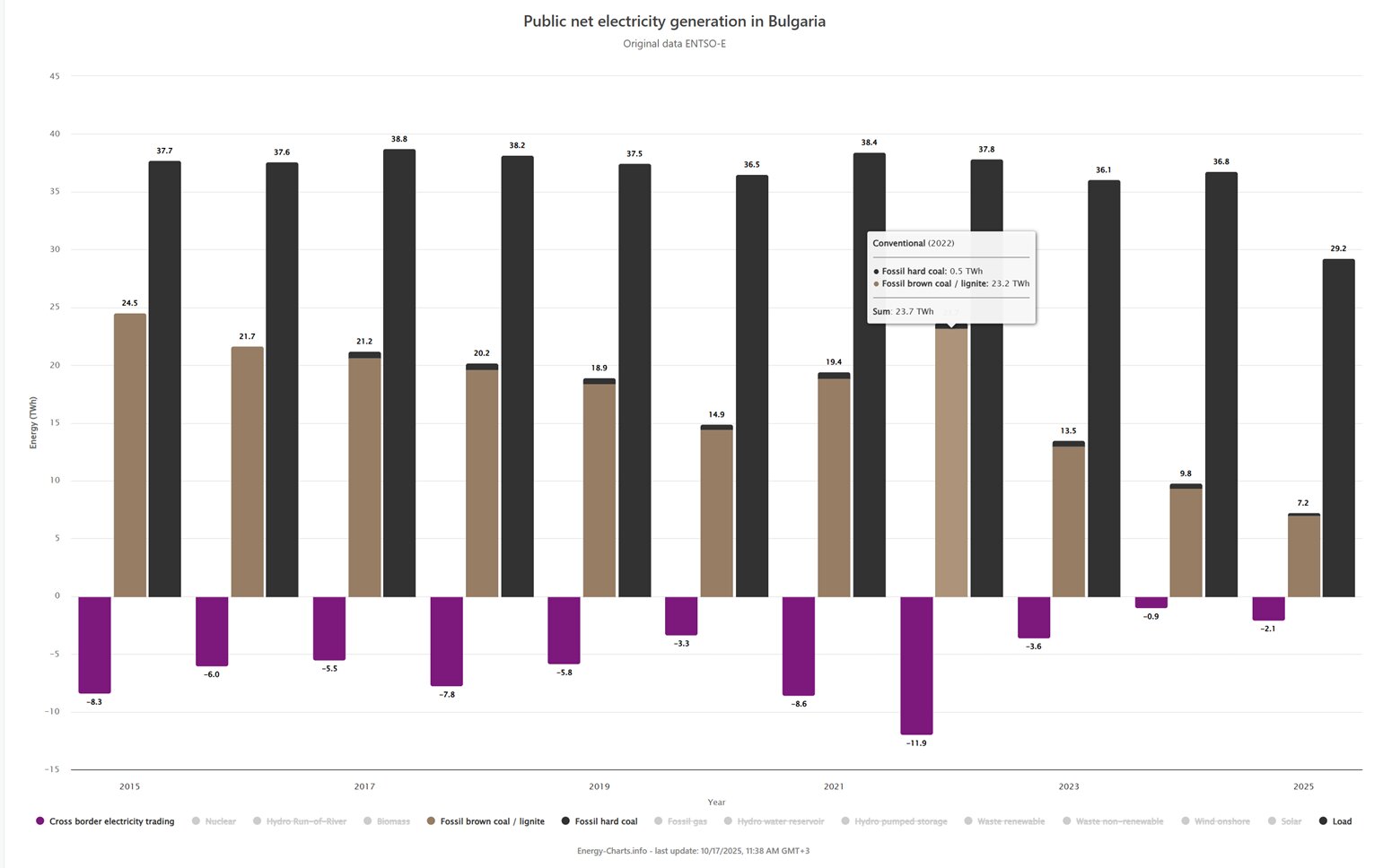 Друг важен фактор е, че на практика няма съществена промяна на общата консумация на електроенергия в България, която е в обхвата 36-37 TWh. Този спад в производството на въглищните ТЕЦ е единствено и само за сметка на увеличеното производство на енергия от ВЕИ основно соларна. Подемът на фотоволтаиците не е изненада – това е очаквана глобална тенденция. Все по-масовото навлизане на батериите, което подпомага съхранението, ще свива още повече пазара на въглищните мощности. Последните се превръщат във все по-голяма тежест за бюджета и данъкоплатците.