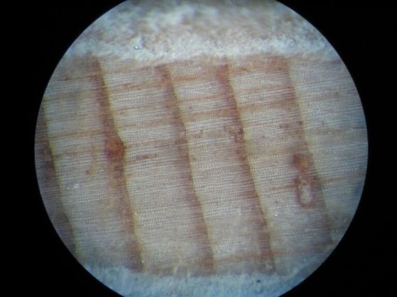Изследването разкрива най-малко 9 дълбоки пукнатини, минаващи по дължината на костта, 2 от които преминават през разрязаната област.