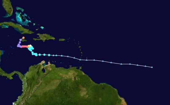 Фиг. 2. Досегашната траектория на бурята Мелиса. Източник